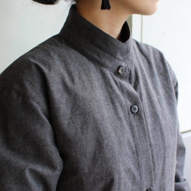 ■コットン馬布スタンドアップカラーシャツドレス TH19W-14