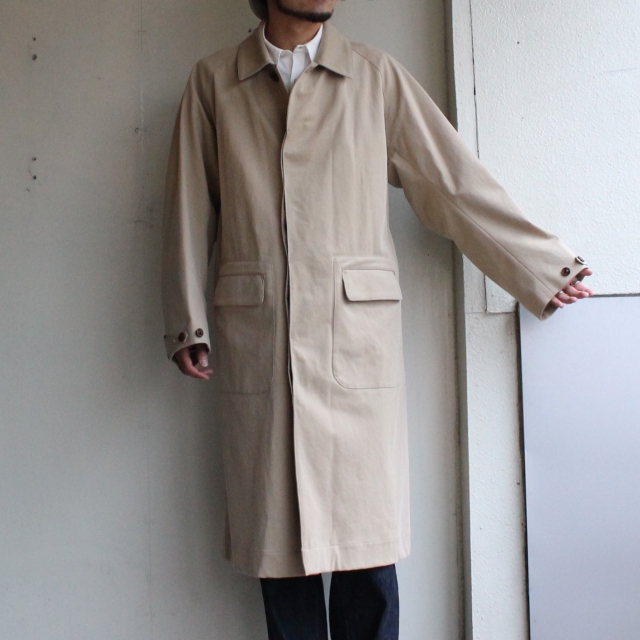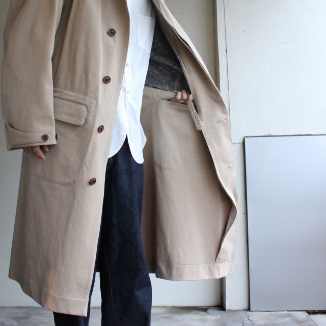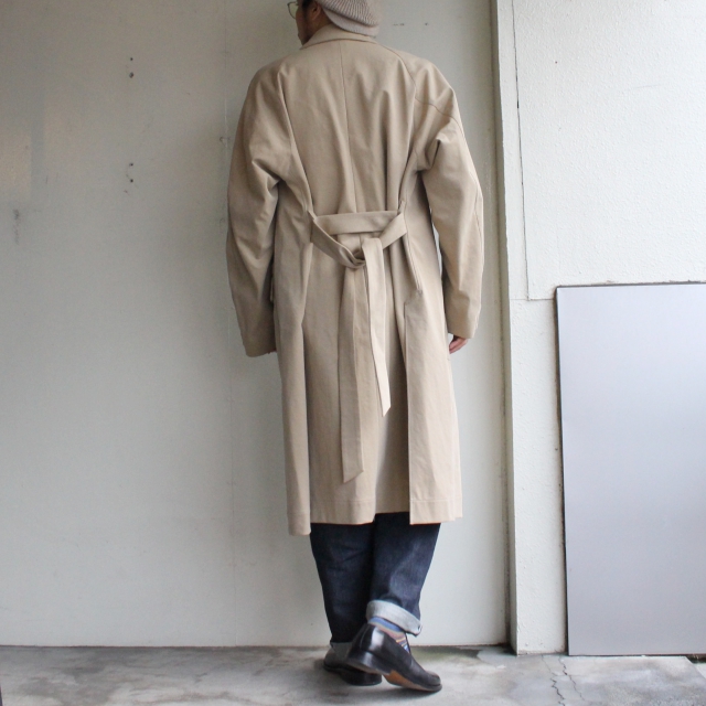 ゆとりのある前振りのラグランスリーブ・内側にアクセスできるフレームドパッチポケット、深いサイドベンツ等機能面も考慮した作りに仕上げています。