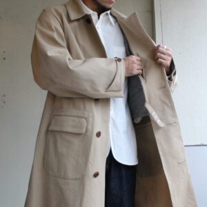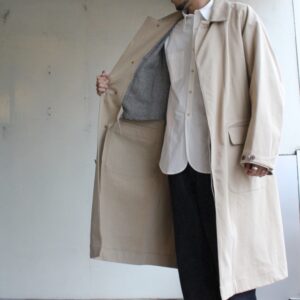 1930年代に見られた、ゆったりしたルーズフィットのドレープ型コートから着想したバルマカーンコート。