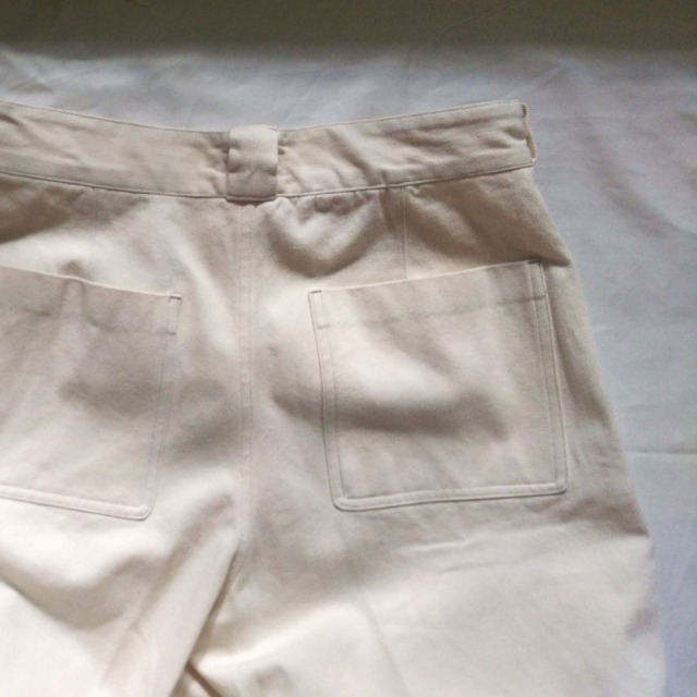 前中心はボタンフライ、トップのボタンは紅茶染めした水牛ボタン を使用しているのでさりげないアクセントに。