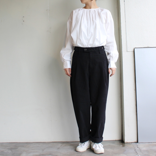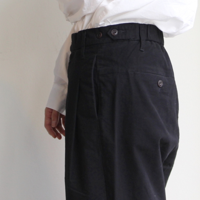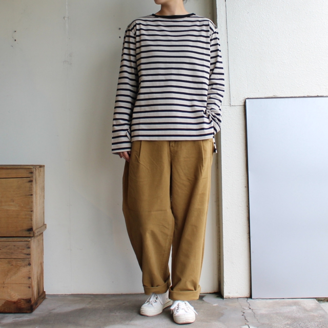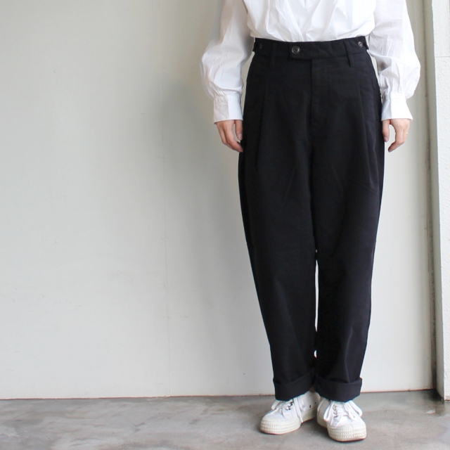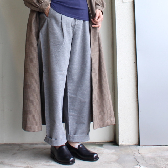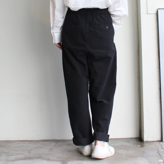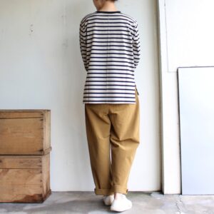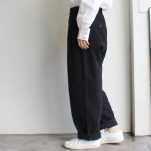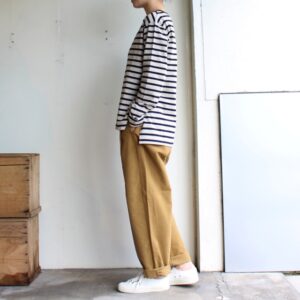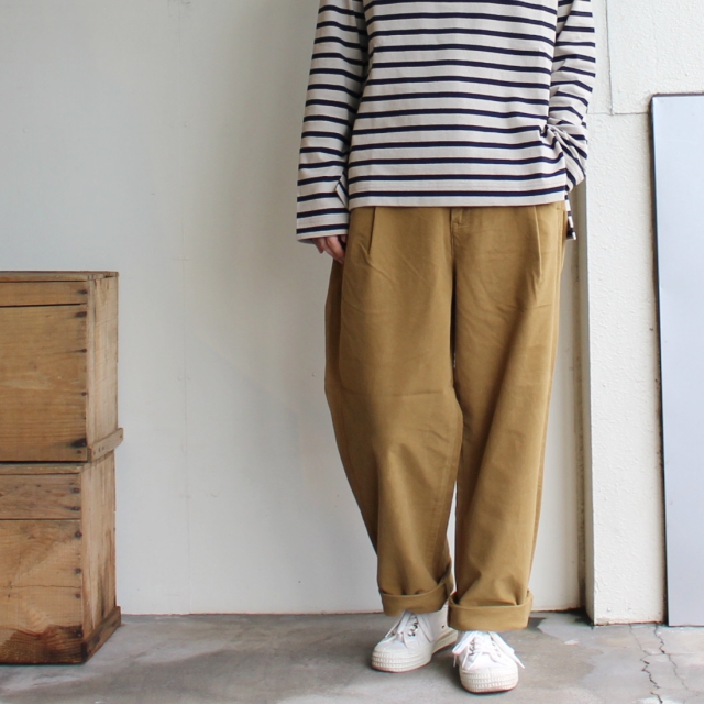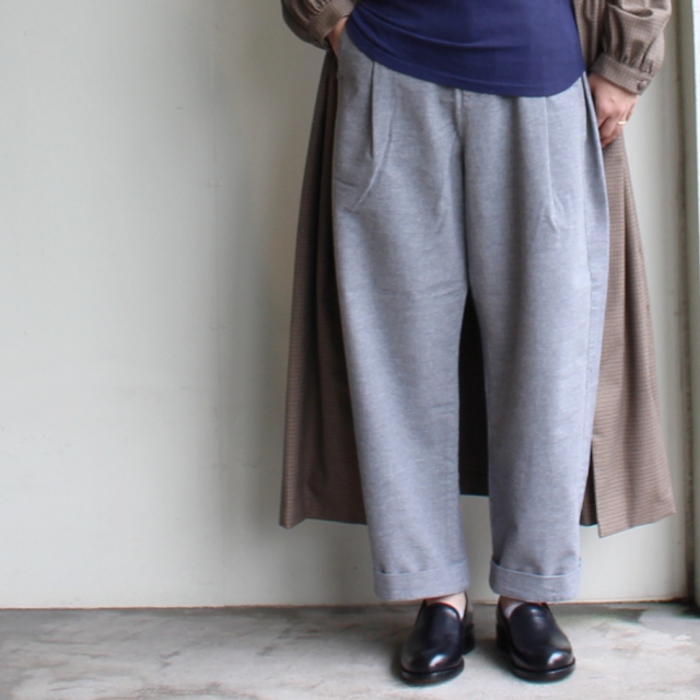 やや太めのテーパードシルエットがリラックス感を演出しながら、微起毛の素材から温かみも楽しめる秋冬に最適なパンツ。
