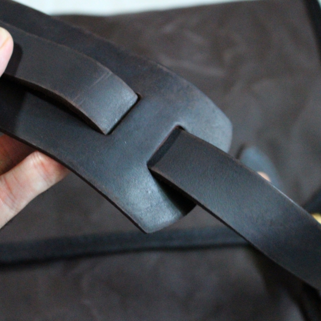 レザーは姫路産ベジタブルタンニンレザーを使用し、トラディショナルな手染め製法で染め上げました。