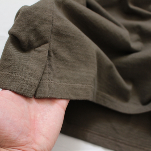 通常のTシャツとスウェットの中間のようなしっかりした生地感で、1枚でも主役になるカットソーに仕上がっています。