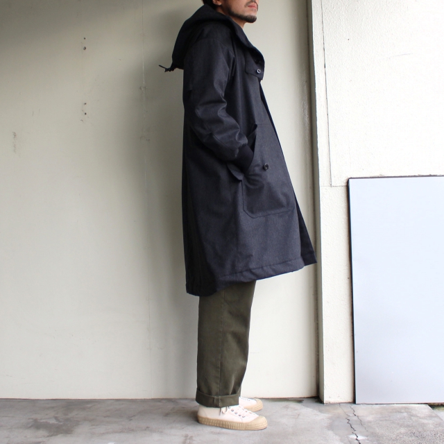 フード付きで羽織るとモッズコートのようなミリタリー感があり
