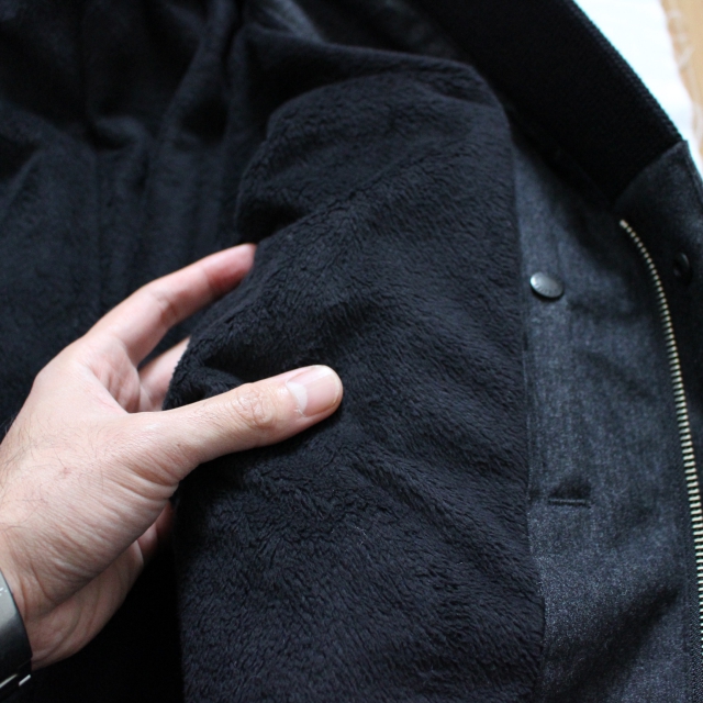 内側はフードと身頃部分に毛足の細かいフェイクファーが付いているので、保温性も安心。
