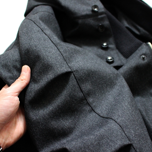 メルトンウールのコートとは違う、ずっしりした感じが無く、軽やかで上品な生地に仕上がっています。