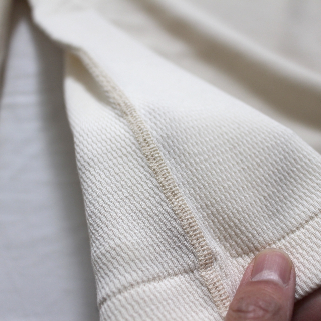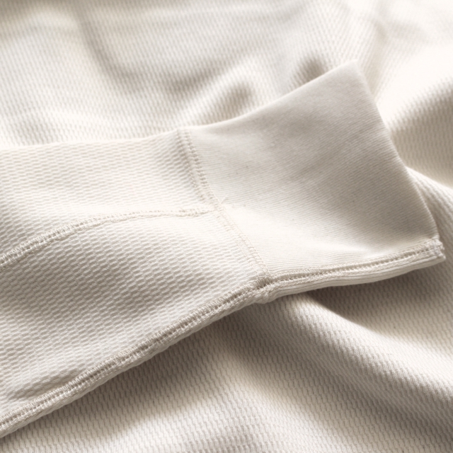 コットン×カシミヤのサーマルで、目のしっかり詰まった生地を使用しています。