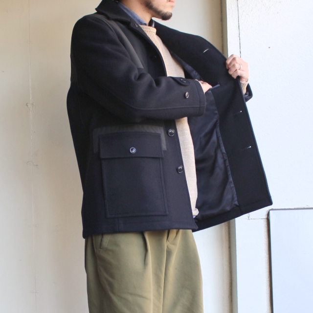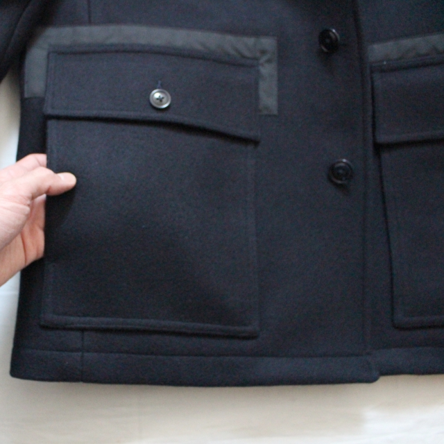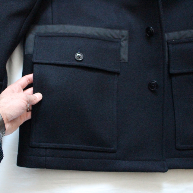 身頃本体には、打ち込みの良い880g/㎡のウールメルトンを使用。