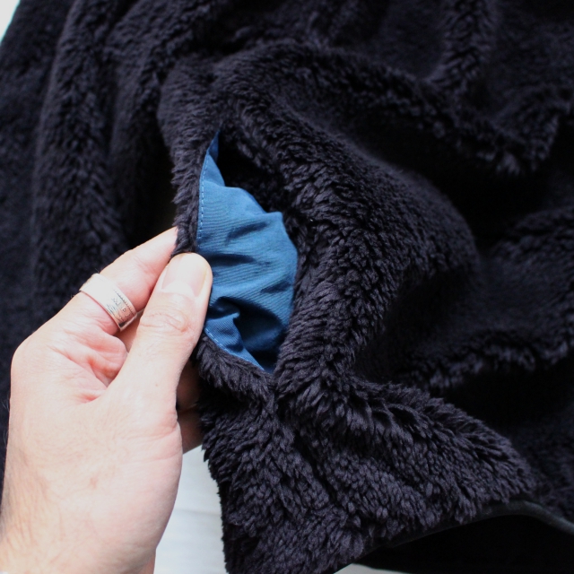某アウトドアブランドをイメージするフリースですが、サイジングなどにファッション性を落とし込んだ