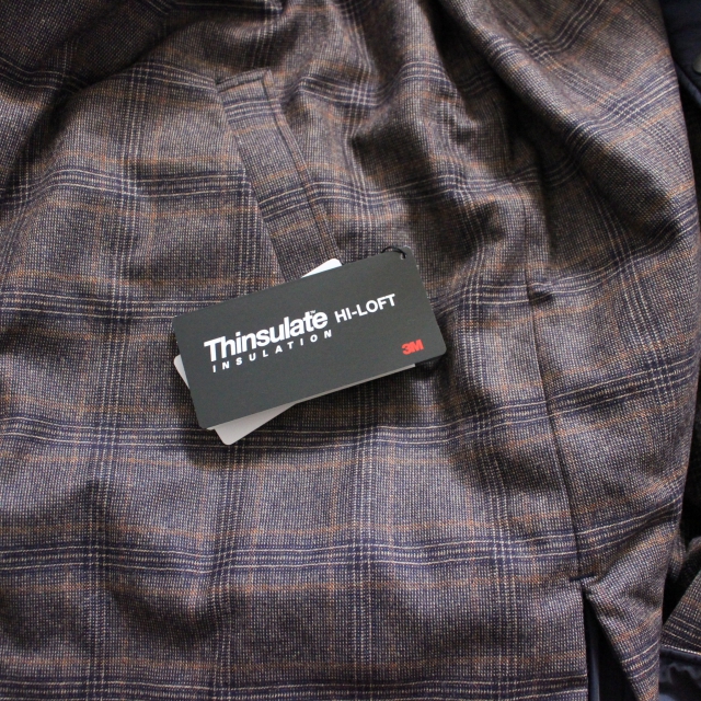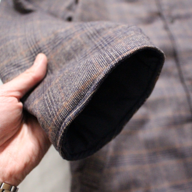 チェック柄の表生地はSuper 100’s Woolが原料のストレッチフラノウールを使用。