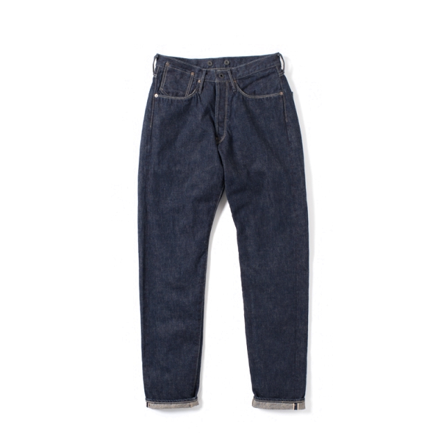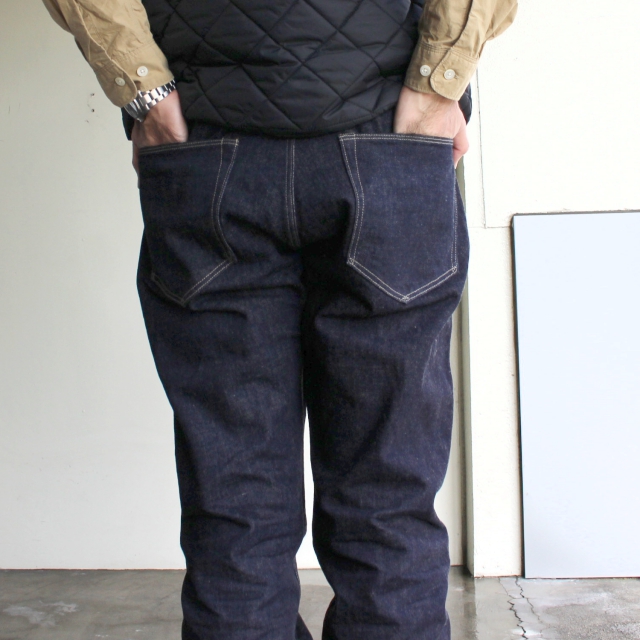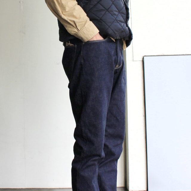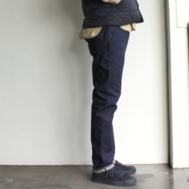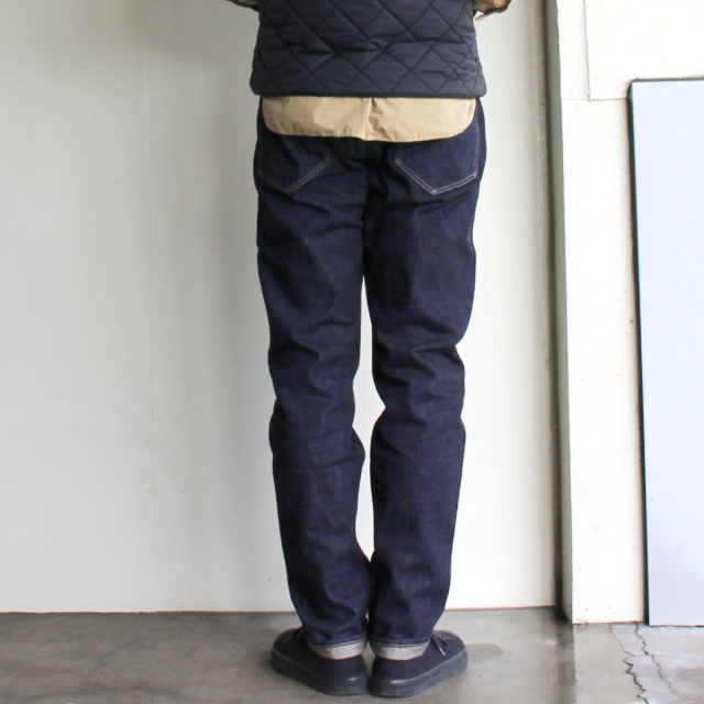 股上がやや深めのスリムテーパードシルエットのベーシックデニムです。