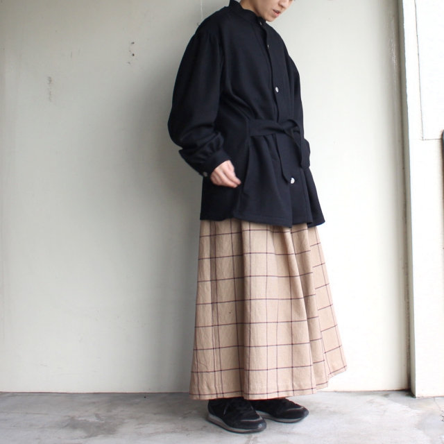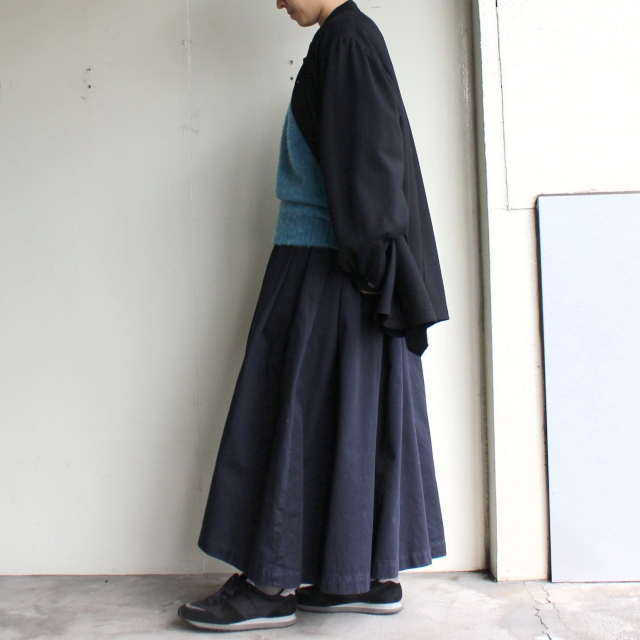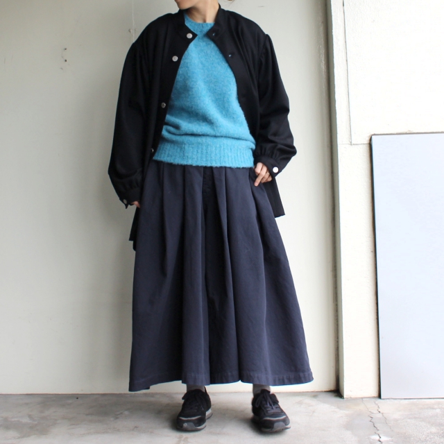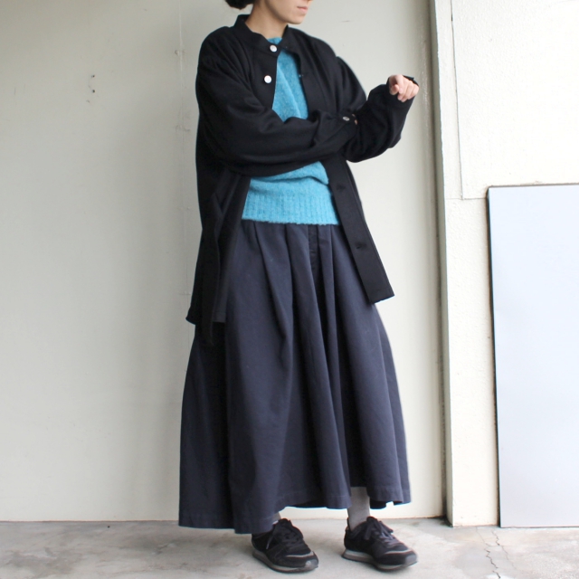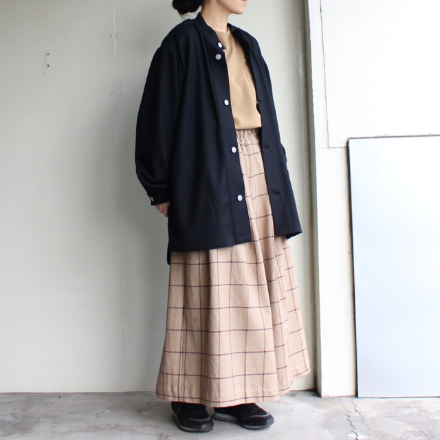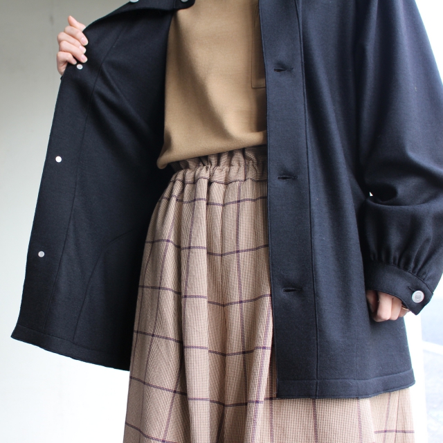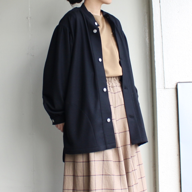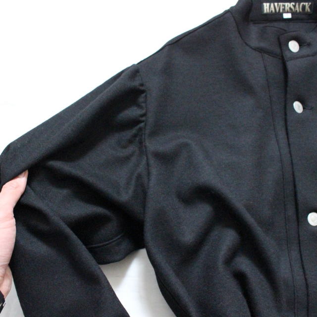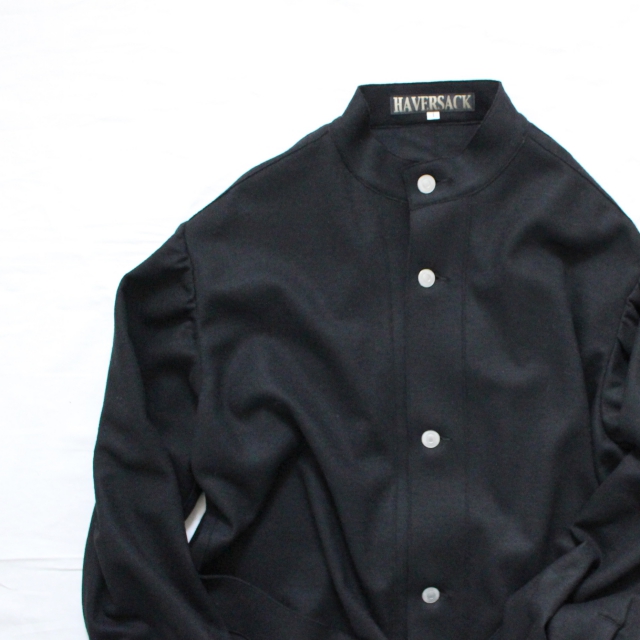 ギャザーやシルエットのアレンジによってフェミニンに仕上げたハバーサックらしい羽織です。