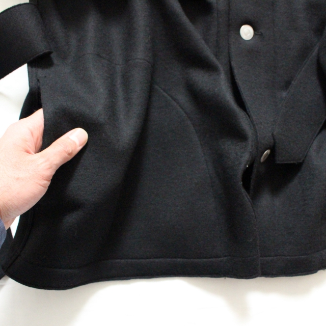 生地は圧縮スムース(ウール100%)を使用した厚手のシャツのような生地感です。