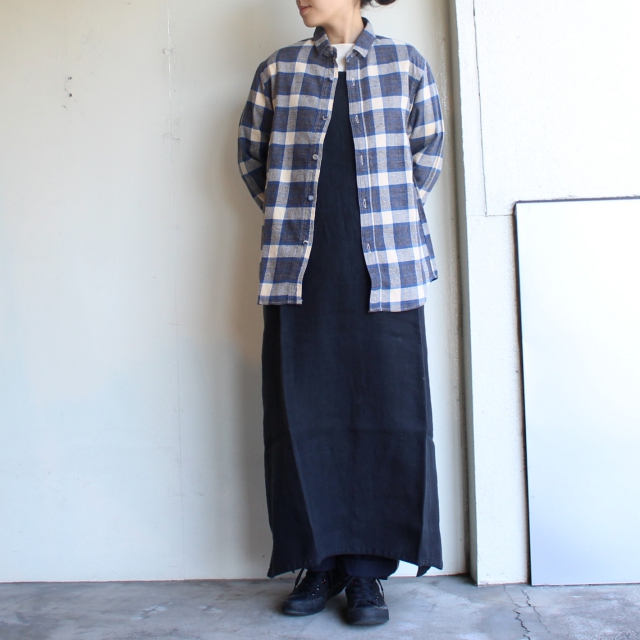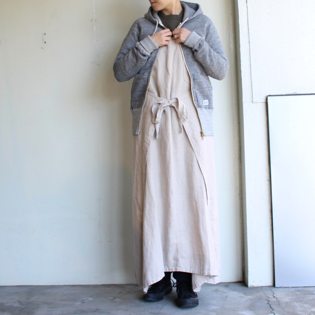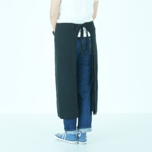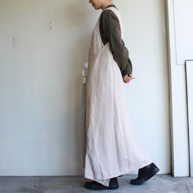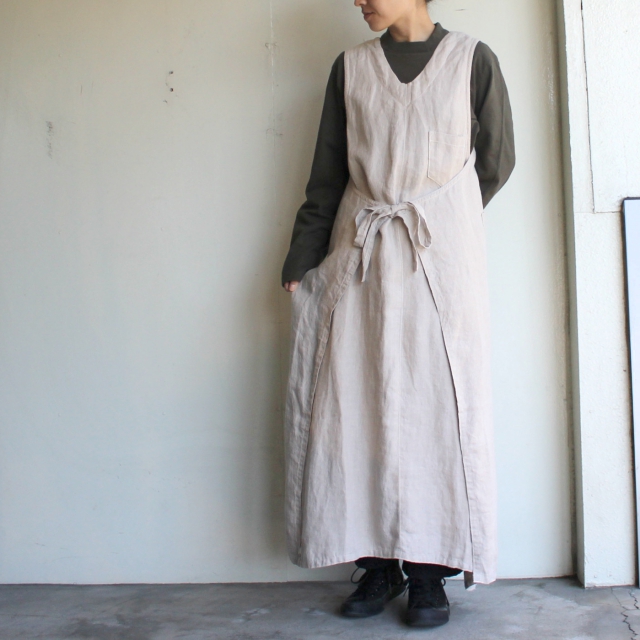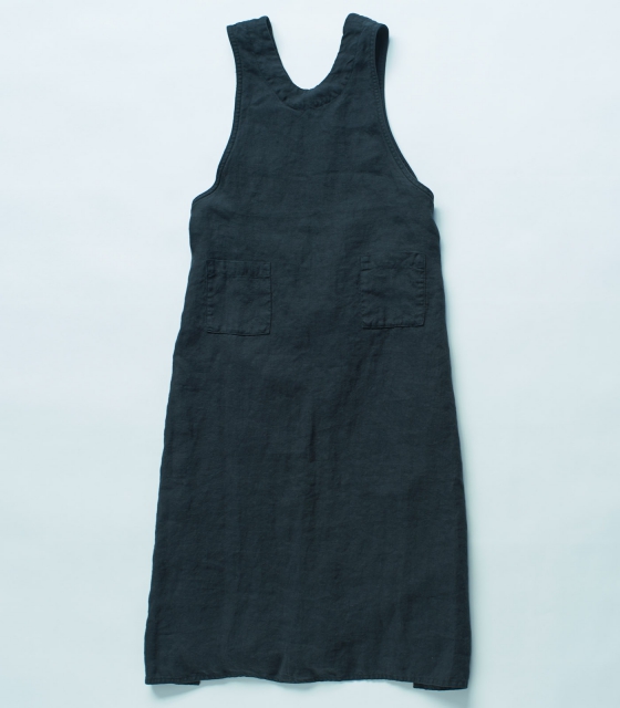 麻100%のリネンオックス生地を使用したエプロン、ワンピースの2WAY仕様。
