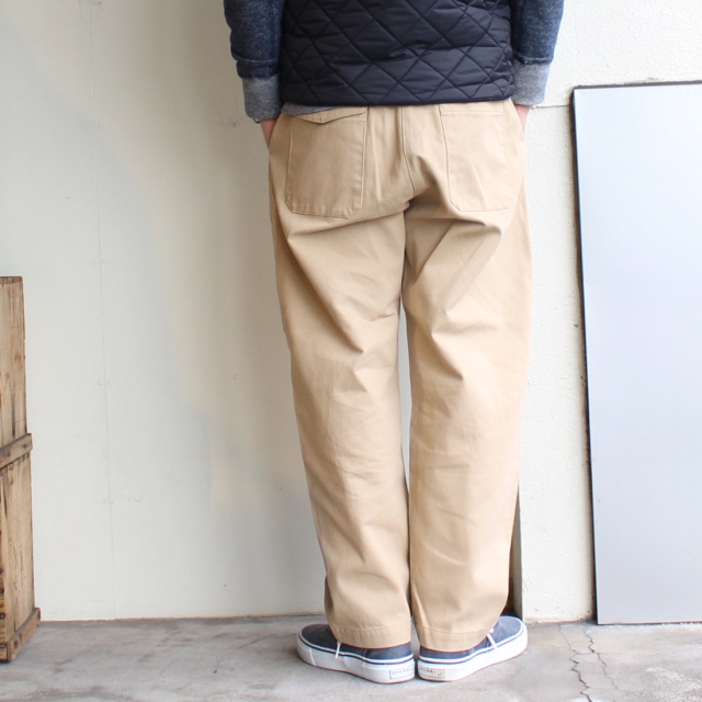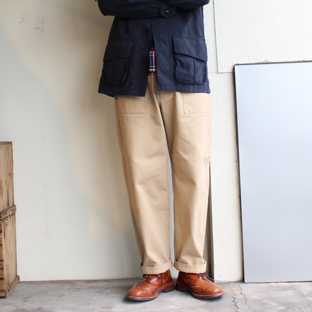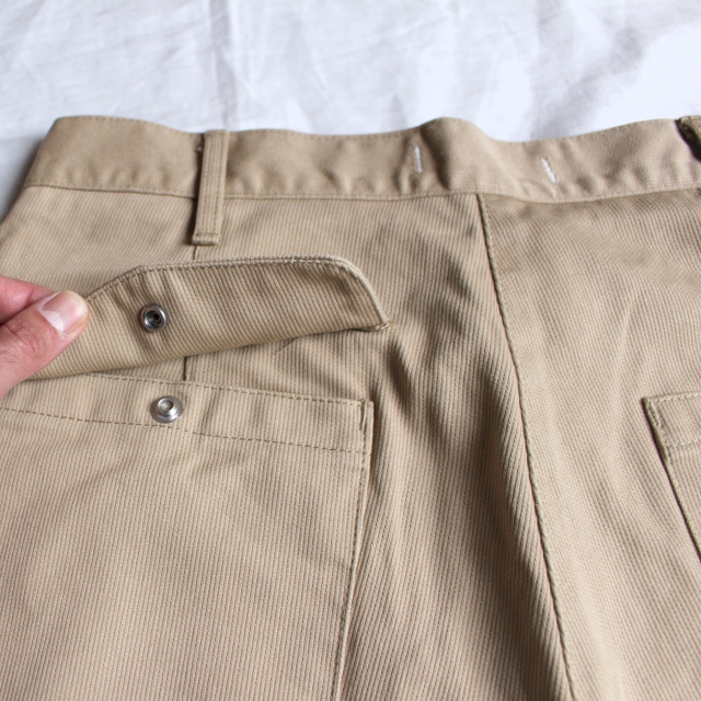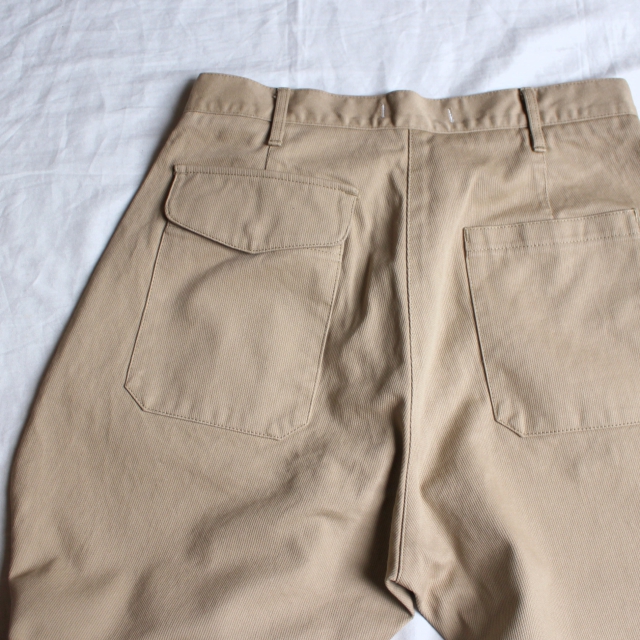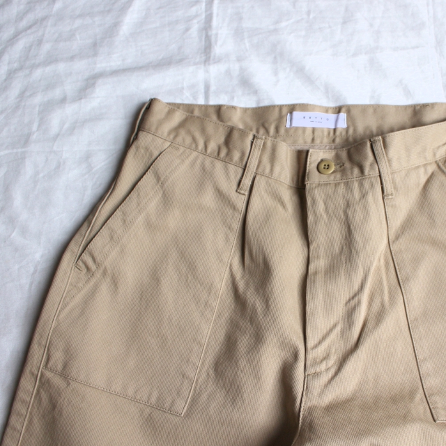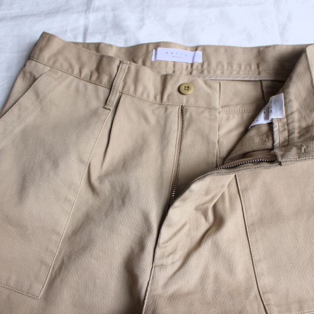 そのピケを使用して、ワイドシルエットにテーパードを程よくかけたベーカーパンツに製作されたのが今作。