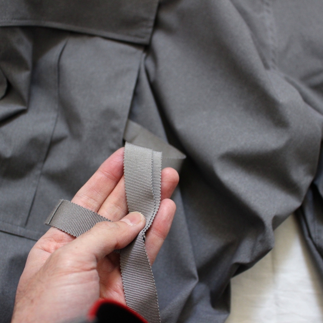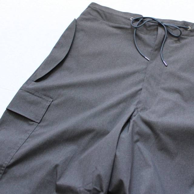 帝人フロンティア社のソロテックス素材の中でも織を工夫し、撥水加工を施した浸透性の高い素材を使用したカーゴパンツ。