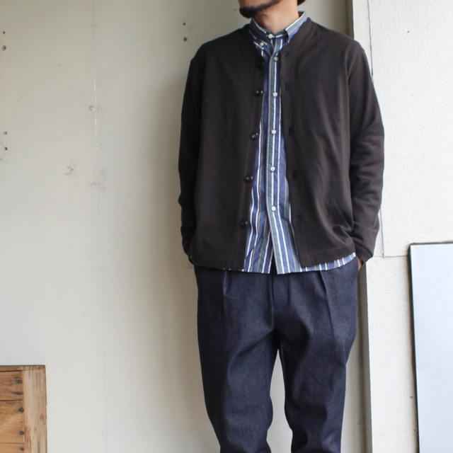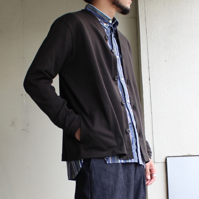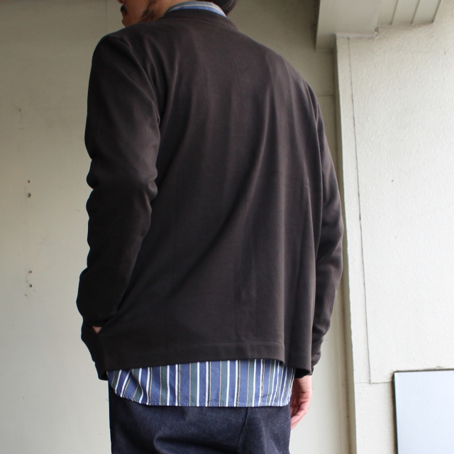 手口には30番手のフライス生地を使用するなど、シンプルながら素材や生地にこだわったカーディガンです。