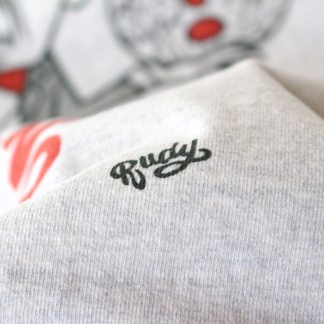 超ヘビーウェイトの綿生地にコミカルなバックプリント。