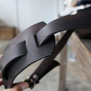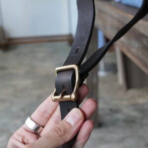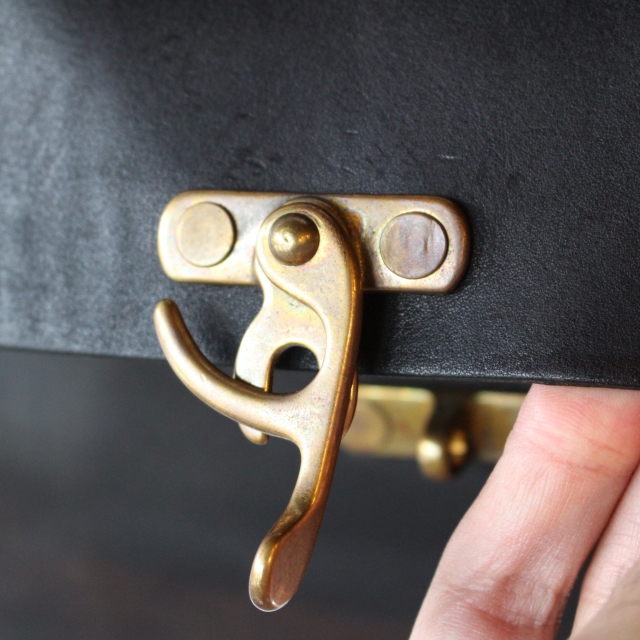 伝統的な鋳物や真鍮無垢の金具も皮革に合わせてエンジング加工しました。レザーと共に経年変化を楽しめます。