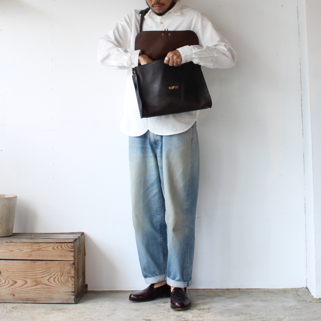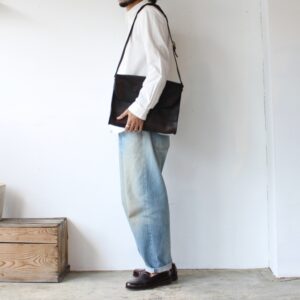 姫路産のフルベジタブルタンニンレザーを丘染めと呼ばれる伝統的な手染め製法で染め上げ、コガシ加工、オイル加工を施した、ヴィンテージのような風合いに仕上げたブランドを代表するシリーズ。