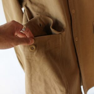イギリスのワークウエアなどに多いポケット補強のテープを裏に付けるなど、サウンドマンらしい作りこみが男心をくすぐります。