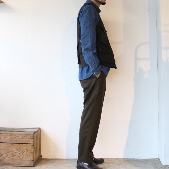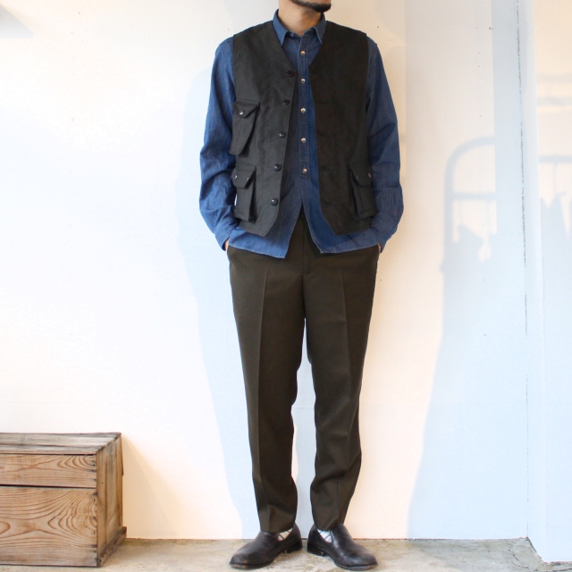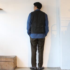 オルゲイユが得意とするジレに、ミリタリーやハンティング、フィッシングなどの要素をミックスさせたオリジナルデザインのベスト。