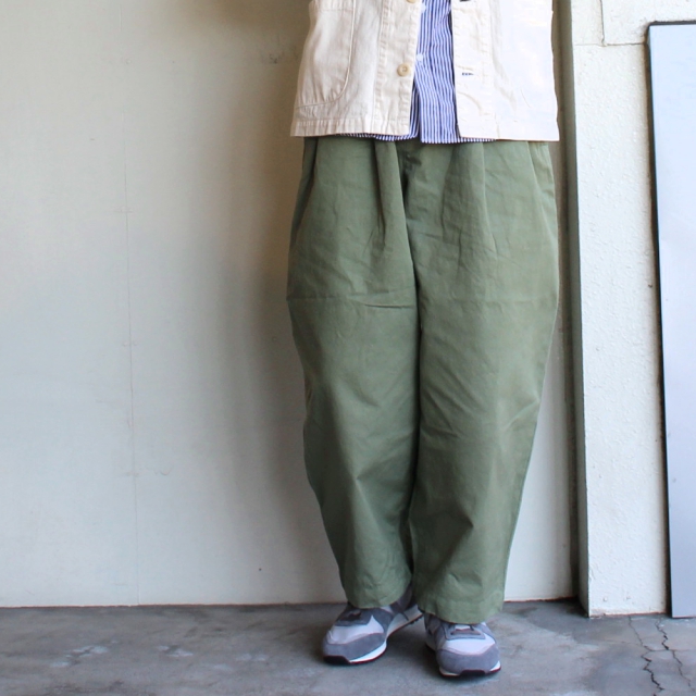 生地に綿麻の40/2強撚ギャバジンを使用した、軽くてリラックス感あふれるパンツです。