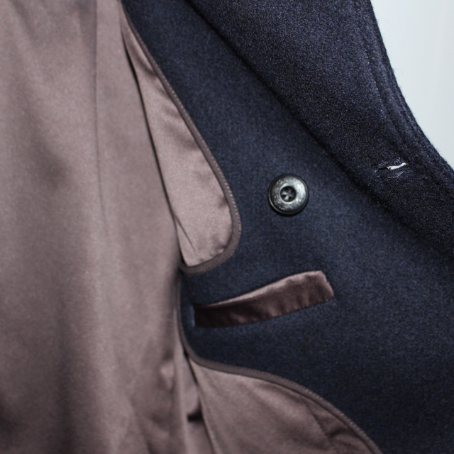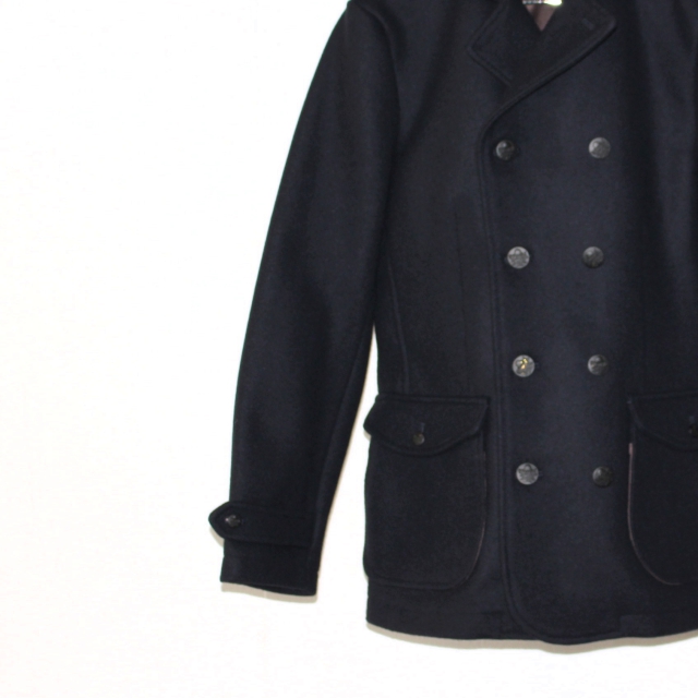 肉厚なメルトン生地、真鍮製チェンジボタン、身体のラインに沿うようタイトに仕上げたシルエットが特徴。
