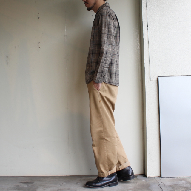 Orgueil オープンカラーチェックシャツ Open Collared Shirt OR-5036A (Beige Check)