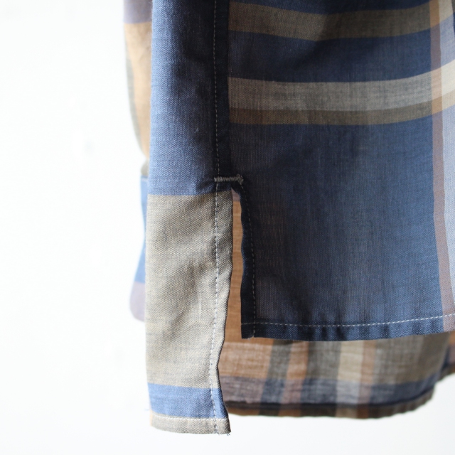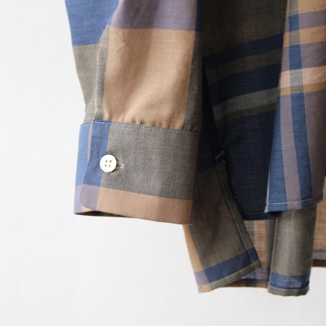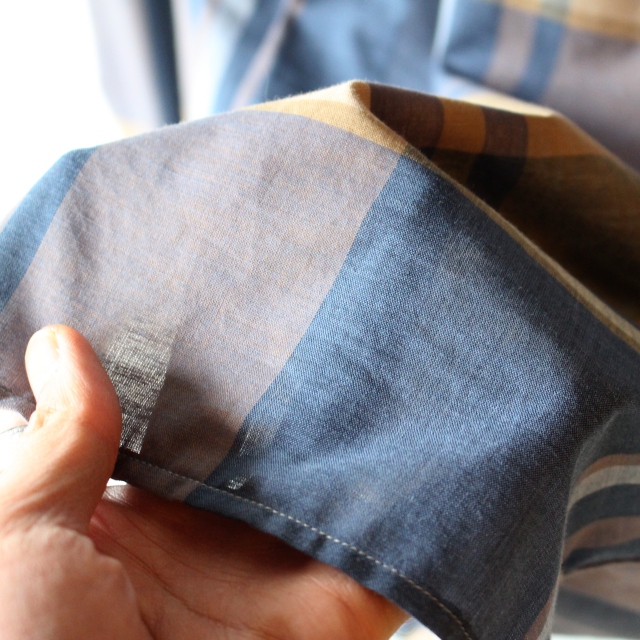 大きめなチェック柄の生地は、コットンにシルクを混紡した軽くて滑らかな着心地です。