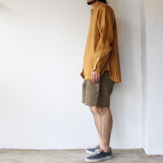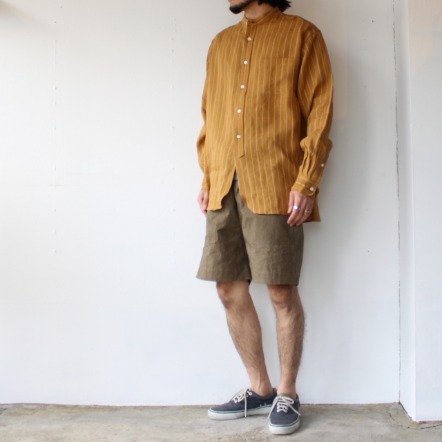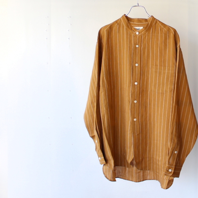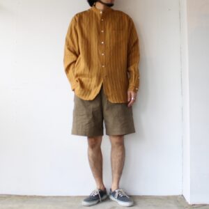バンドカラーシャツをベースに、身幅、着丈など全体のサイズ感をアップしたシルエット。