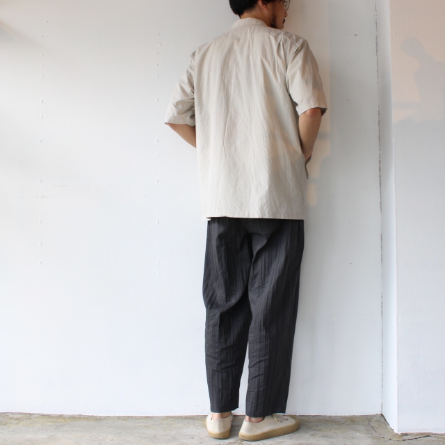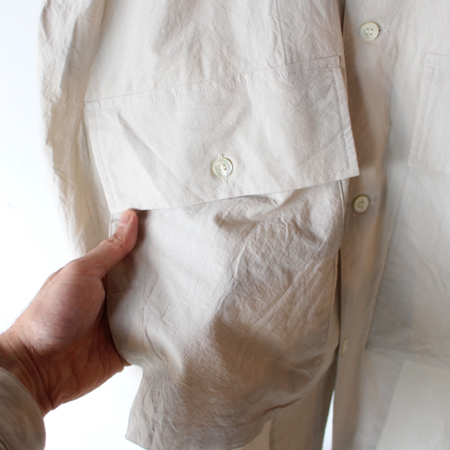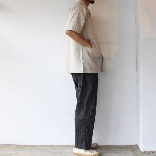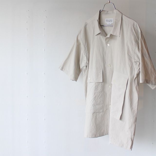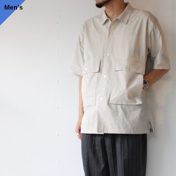 フロントの大きなマチ付きポケットが特徴的な半袖シャツです。