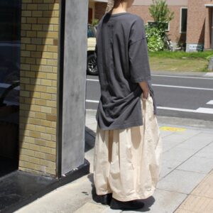 ドライタッチなUSA天竺を使用したカットソーで、ロング丈、サイドにスリットを入れたデザインが特徴。
