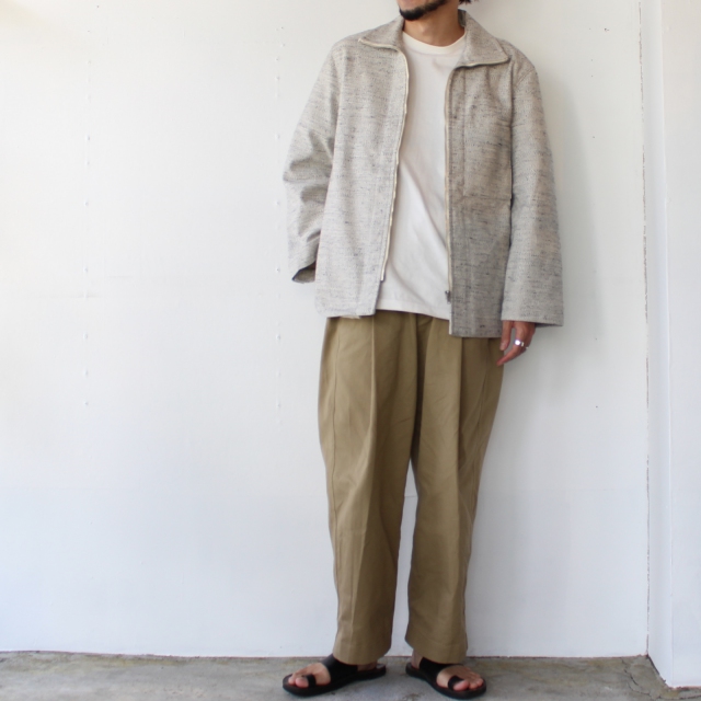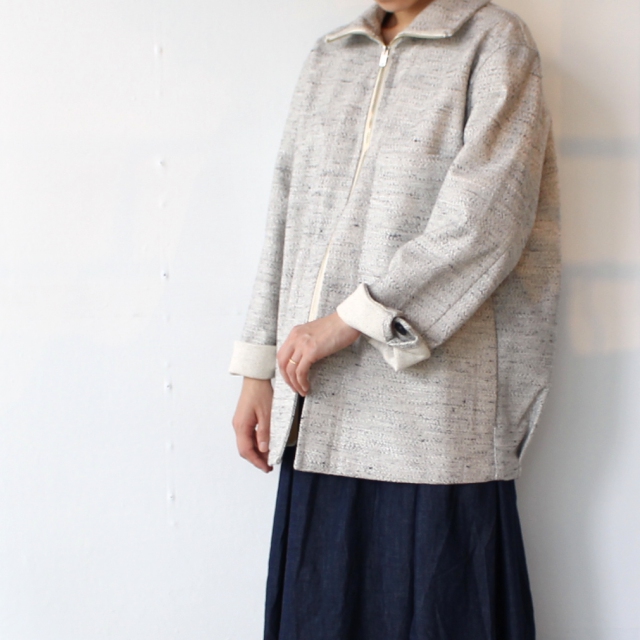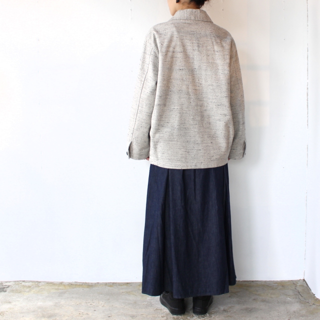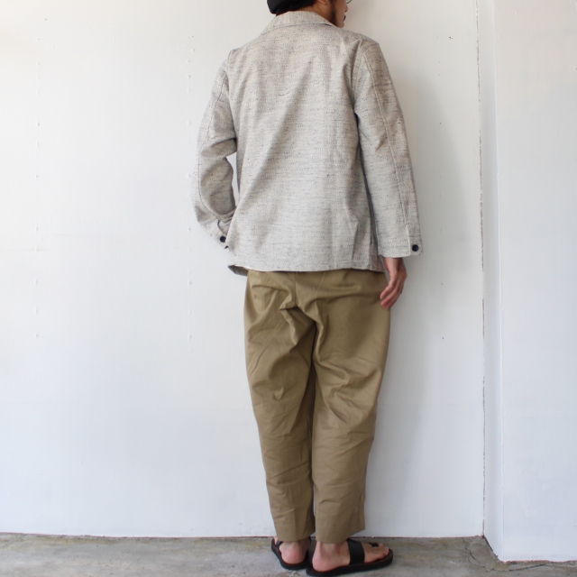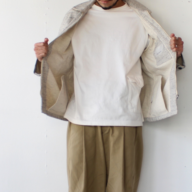 杢調の生地が特徴のケモノカスリを使用したジャケット。