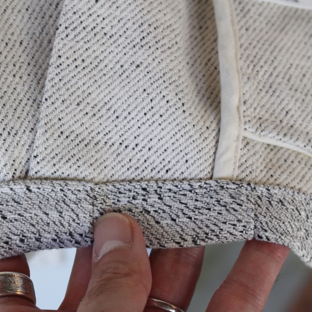 8号帆布の経糸をベースに、緯糸に糸自体に細太がある意匠糸を織り込んでいます。