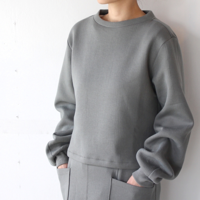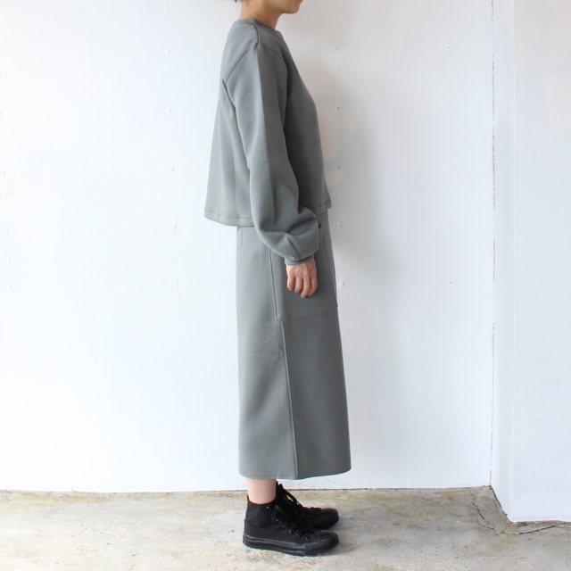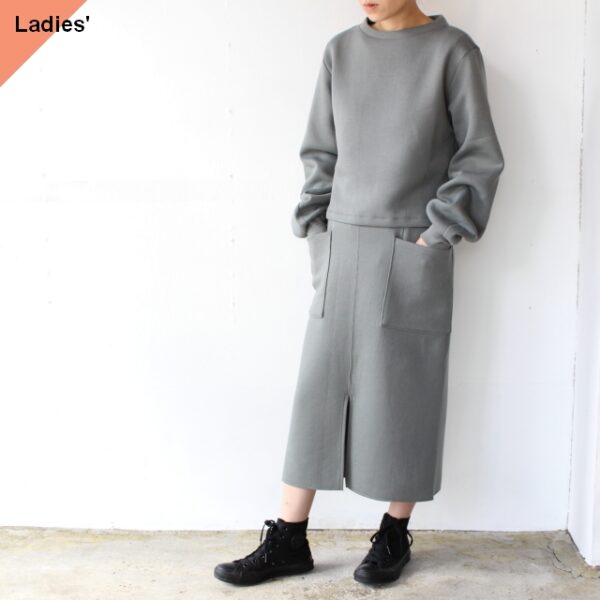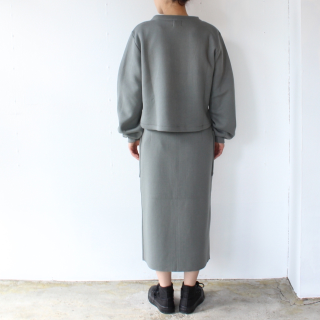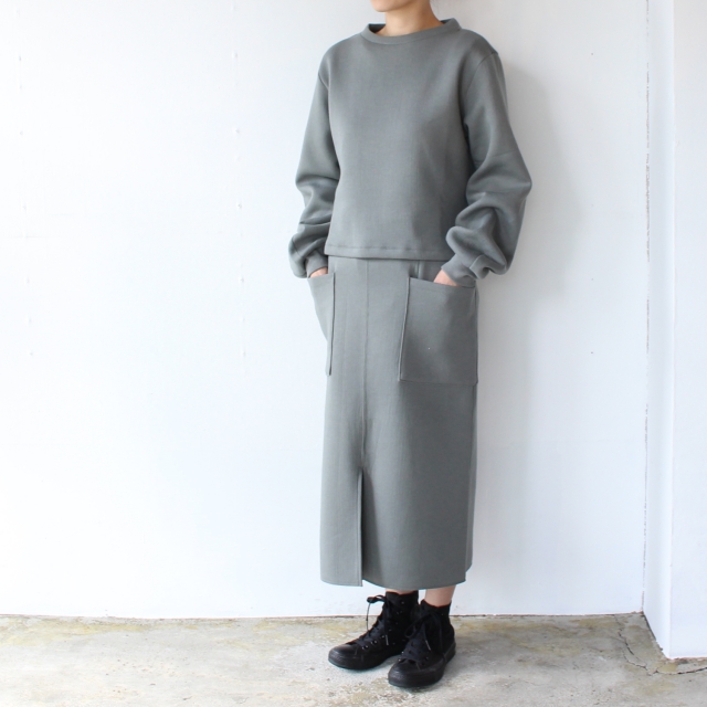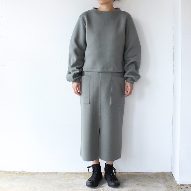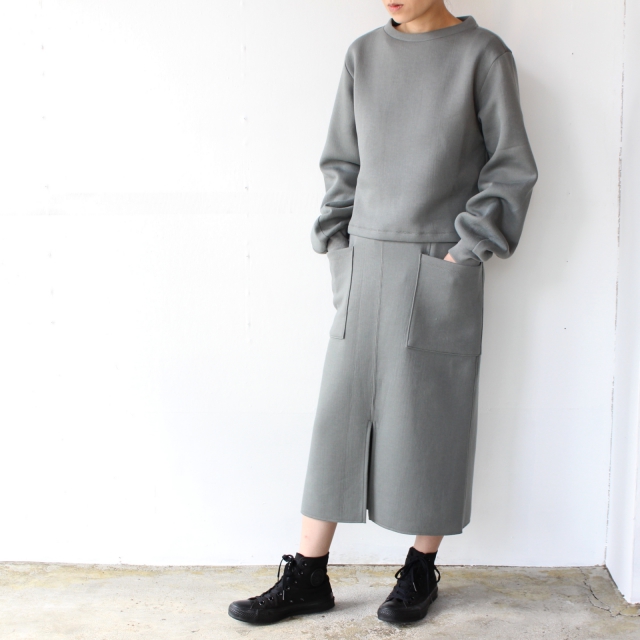 カードボードニットセットアップ Cardboard knit setup / Puff sleeve pullover & Midi skirt (モスグレー)