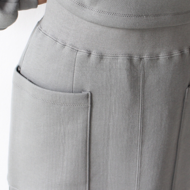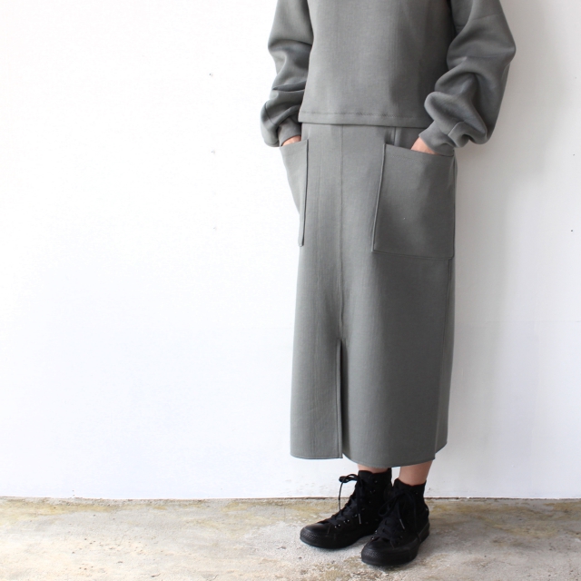 ボトムは程よいゆとりを持たせたシンプルなスカートに、フロントのパッチポケットがアクセント。