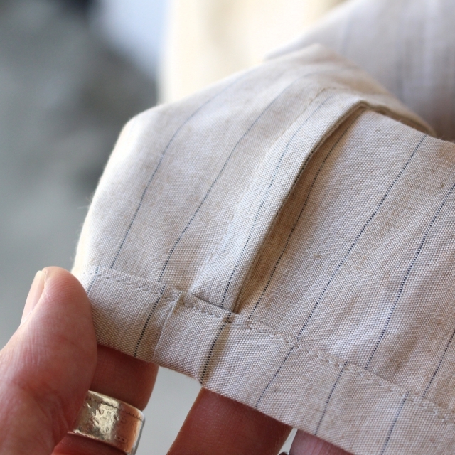 背中肩部分から裾にかけて、袋縫いで縦にさりげなくラインが入ります。