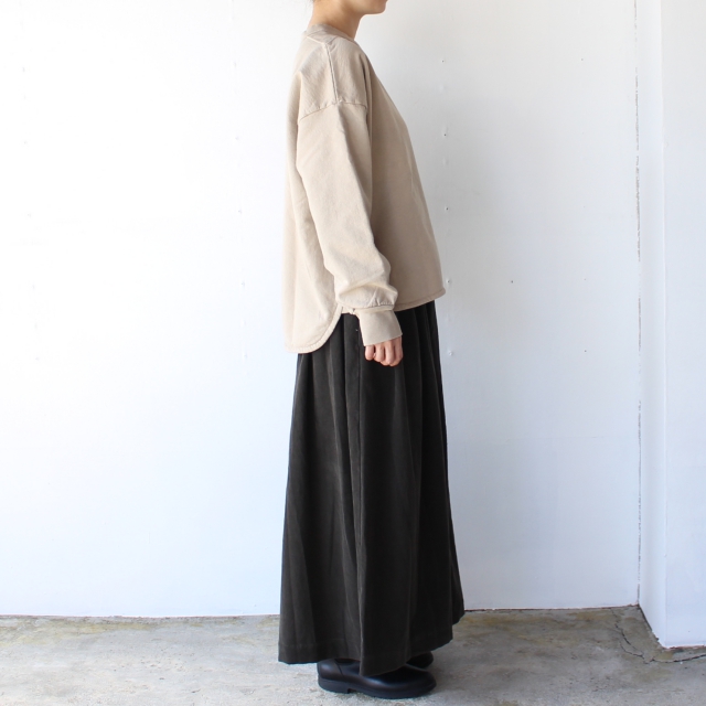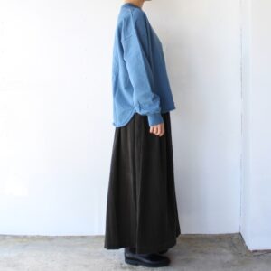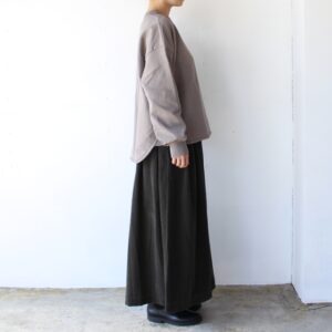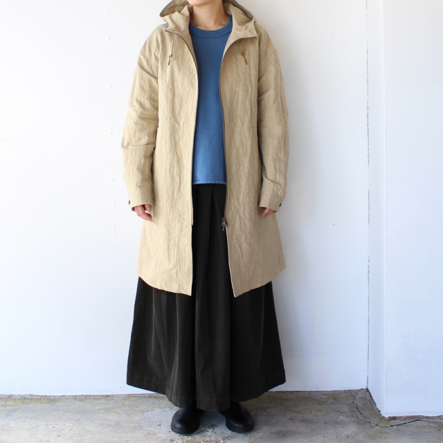 裾のラウンドがアクセントになり、着丈も前後で変化を出しています。