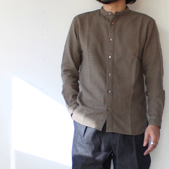 Orgueilよりバンドカラーシャツ。