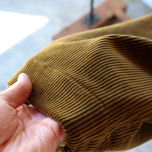 生地は太畝の8Wヘビーコーデュロイを使用し、ニドムバイオ加工で柔らかさも加えています。