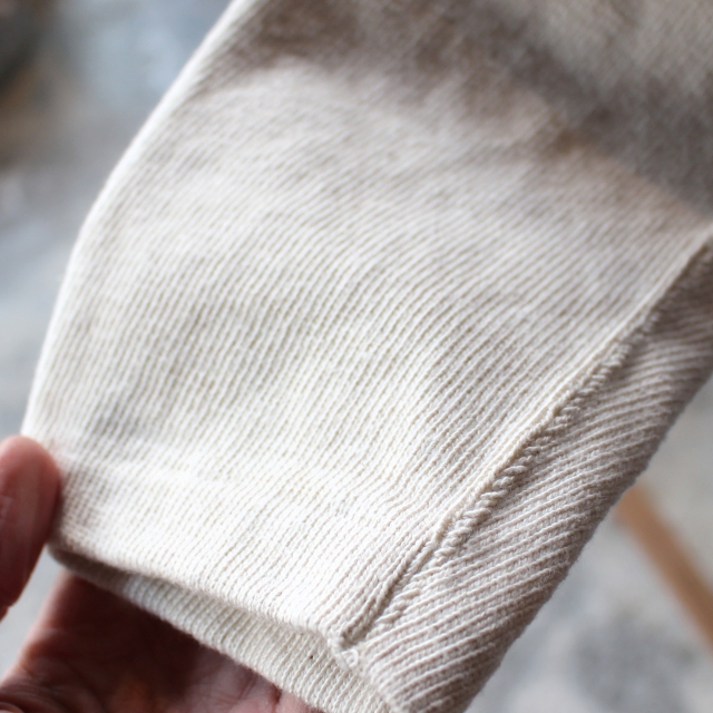 生地は、和歌山県に現存する100年ほど前のスイス製吊り編み機で作られた天竺編み。