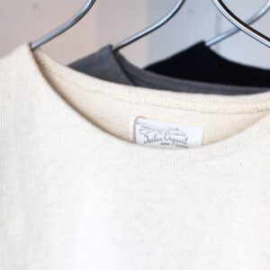 バスクシャツの基本を再現しつつ、生地感や色は国内カットソー工場ならではのこだわりを詰め込んでいます。