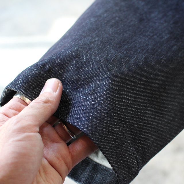 (※今回は未洗いのデニムを使用していますので、洗濯時に1~2cm程縮みます。)