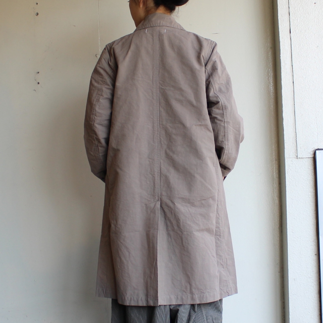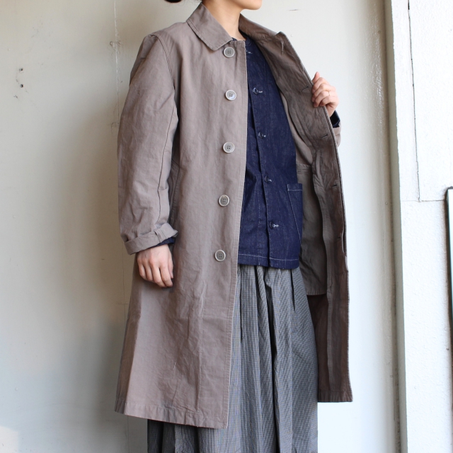 綿と和紙の糸を織り交ぜた、独特な生地感のロングコートです。