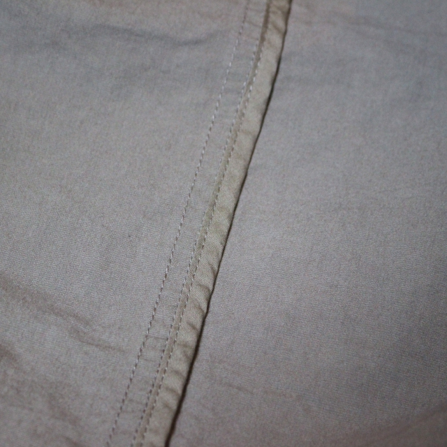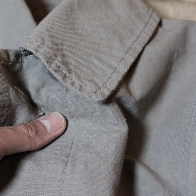 裏地はなく、生地の端はパイピング処理、前立ては比翼ボタン。