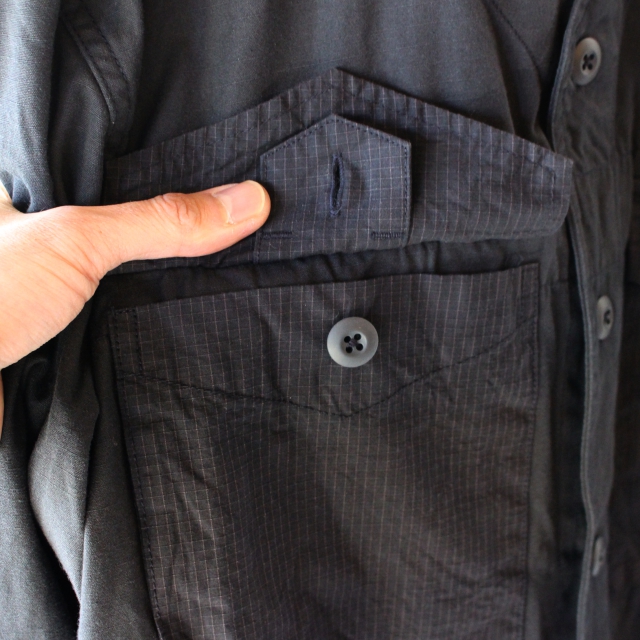 胸はフラップポケットに、袖はカフス仕様でシャツのようなライトな印象に。