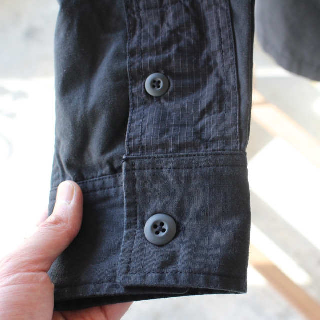 肘あてにも別生地(リップストップ)の切り替えを配しデザイン性と強度を備えた一枚。