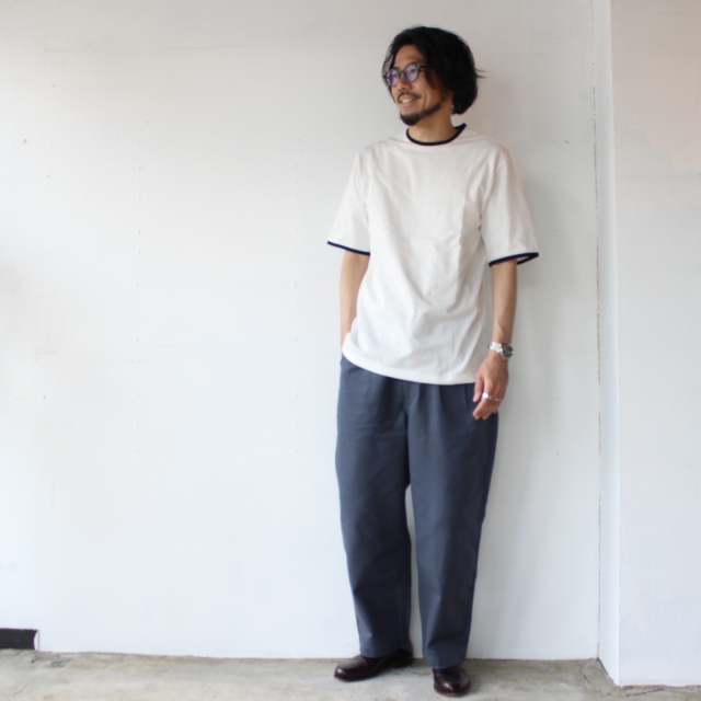 一般的なテーパードパンツよりも裾幅は広いので、ストンと落ちるワイドシルエットが好きな方にお勧め。