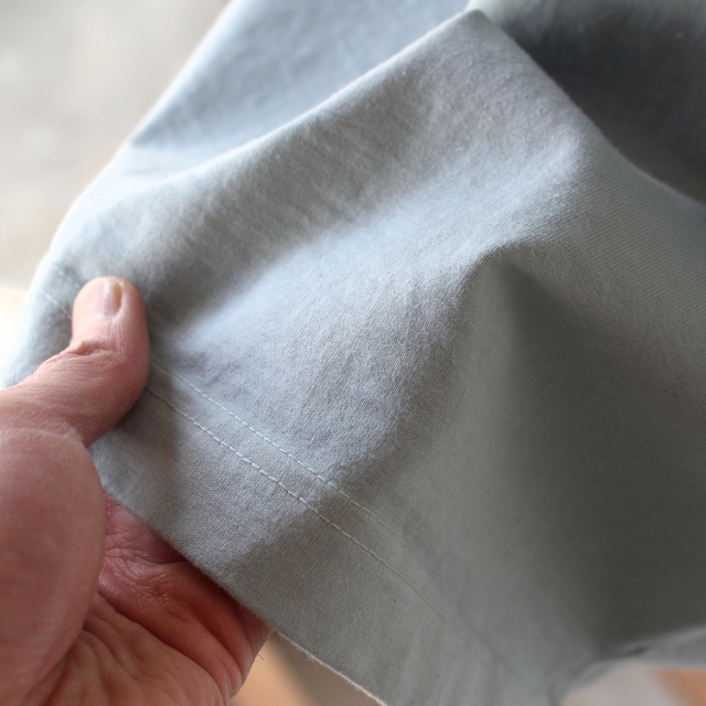 インターロック(両面編み)による滑らかな表面感に、ギリギリまで度詰めで編み上げた生地のカットソー。